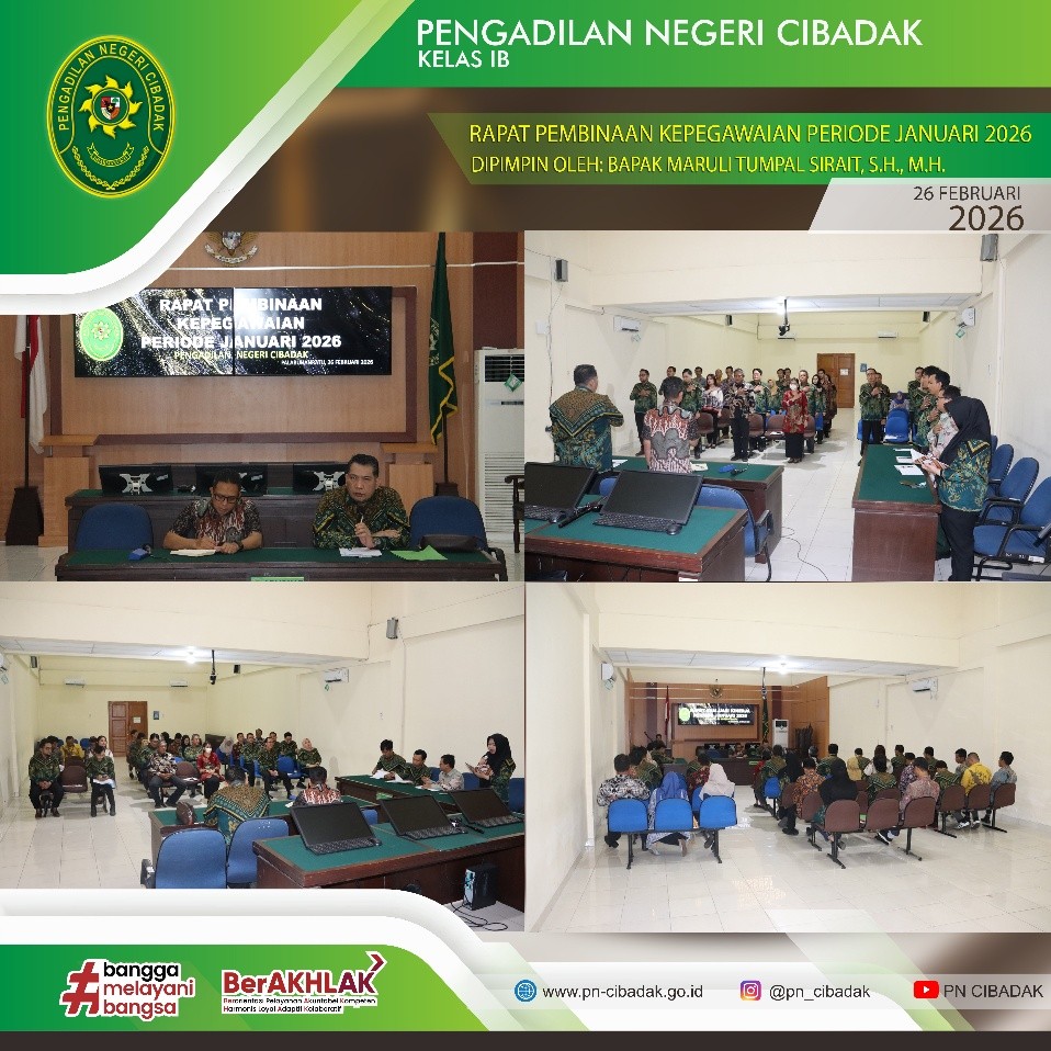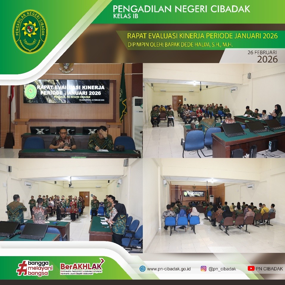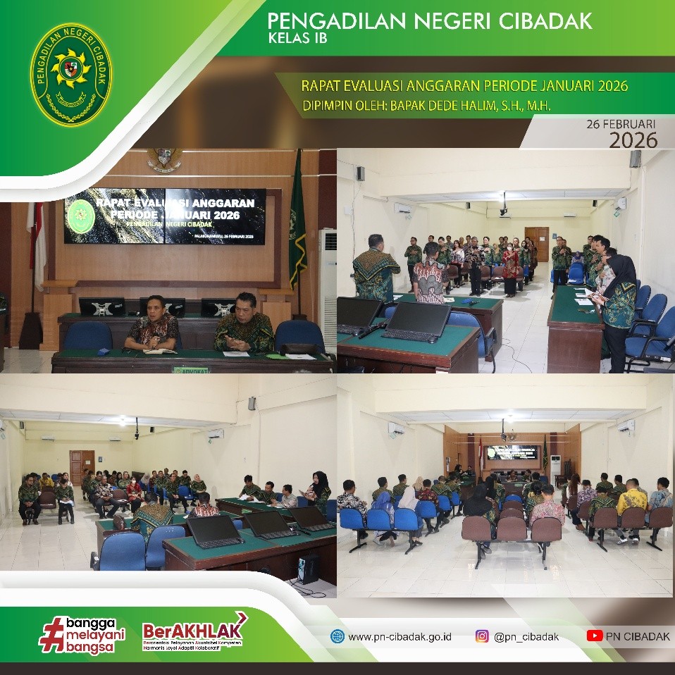 Bertempatkan di Ruang Sidang Utama Pengadilan Negeri Cibadak, Pengadilan Negeri Cibadak menyelenggarakan Rapat Evaluasi Kinerja, Rapat Pembinaan Kepegawaian, serta Rapat Evaluasi Anggaran periode Januari 2026.